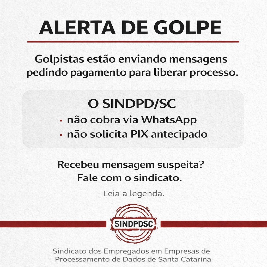 Entre em contato pelos canais oficiais do SINDPD/SC para confirmar qualquer informação.